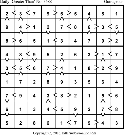 Daily “Greater Than” Sudoku for 2/9/2016