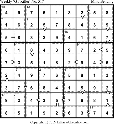 Weekly “Greater Than” Killer sudoku for week starting 3/7/2016