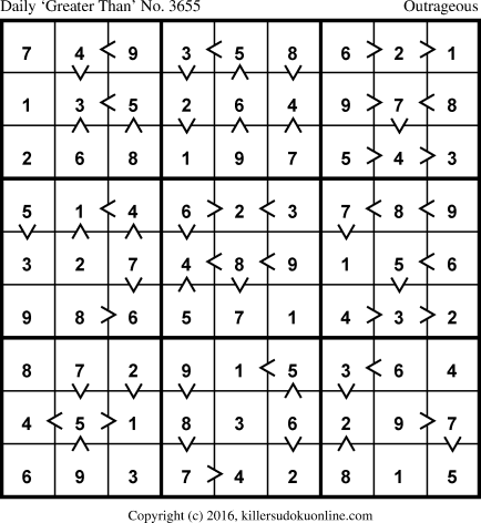 Daily “Greater Than” Sudoku for 4/16/2016