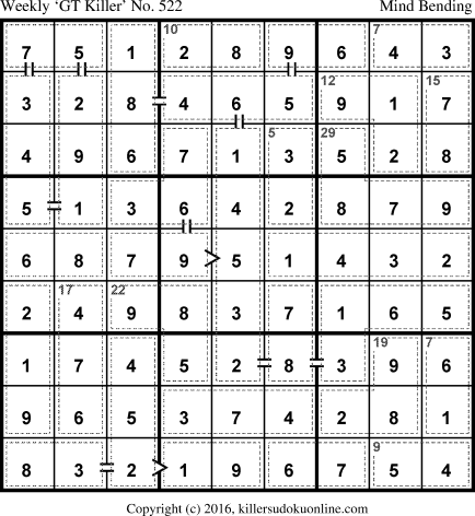 Weekly “Greater Than” Killer sudoku for week starting 4/11/2016