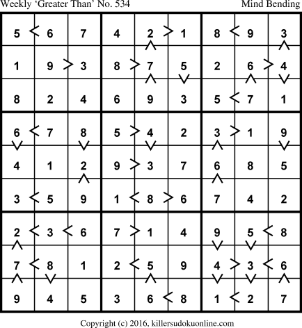 Weekly “Greater Than” Sudoku for week starting 4/11/2016