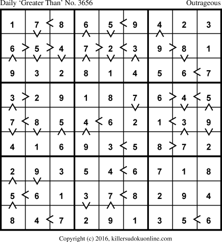 Weekly “Greater Than” Killer sudoku for week starting 4/11/2016