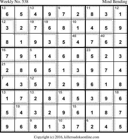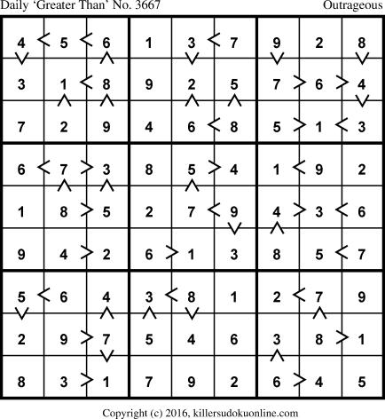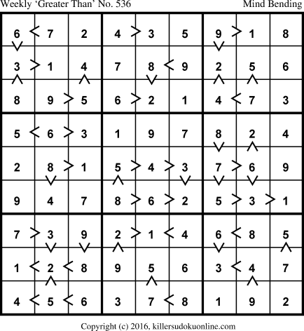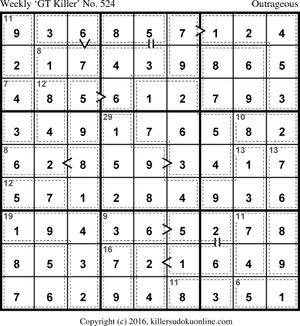 Weekly “Greater Than” Killer sudoku for week starting 4/25/2016