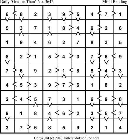 Weekly “Greater Than” Killer sudoku for week starting 3/28/2016