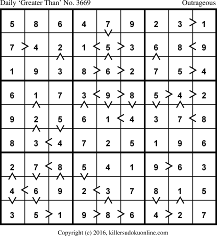 Weekly “Greater Than” Sudoku for week starting 4/25/2016
