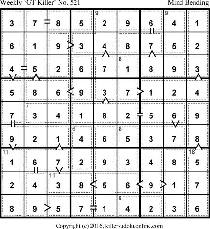 Weekly “Greater Than” Killer sudoku for week starting 4/4/2016