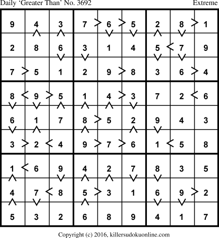 Daily “Greater Than” Sudoku for 5/23/2016