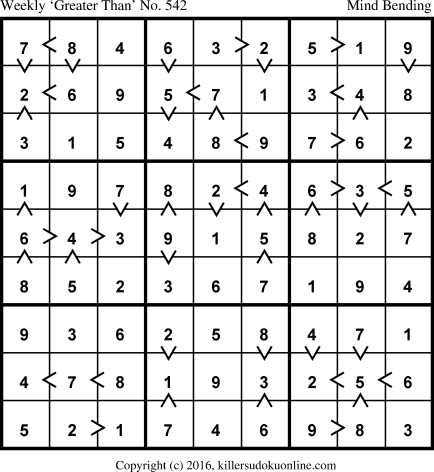 Weekly “Greater Than” Sudoku for week starting 6/6/2016