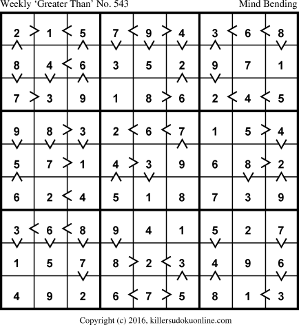 Weekly “Greater Than” Sudoku for week starting 6/13/2016