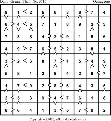 Daily “Greater Than” Sudoku for 6/15/2016