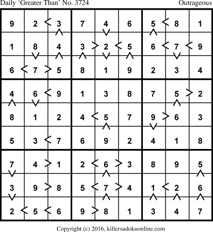 Daily “Greater Than” Sudoku for 6/24/2016
