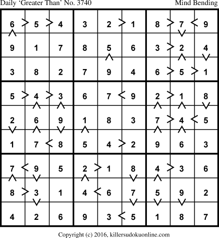 Weekly “Greater Than” Sudoku for week starting 7/4/2016