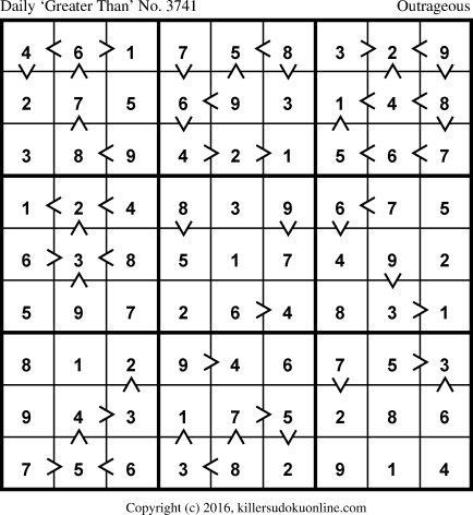 Daily “Greater Than” Sudoku for 7/11/2016