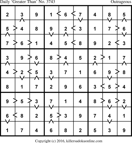 Weekly “Greater Than” Sudoku for week starting 7/11/2016