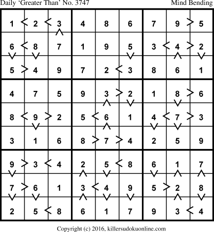 Daily “Greater Than” Sudoku for 7/17/2016