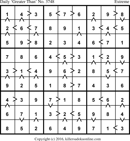 Daily “Greater Than” Sudoku for 7/18/2016