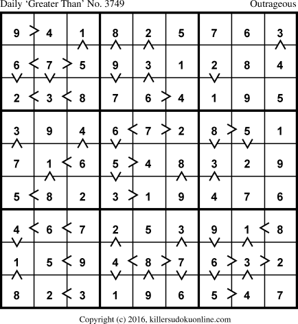 Daily “Greater Than” Sudoku for 7/19/2016