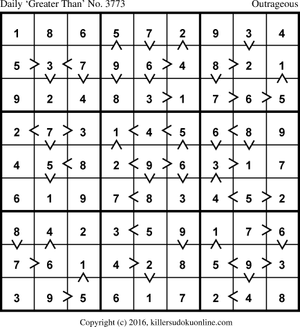 Weekly “Greater Than” Sudoku for week starting 8/8/2016