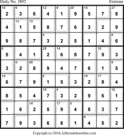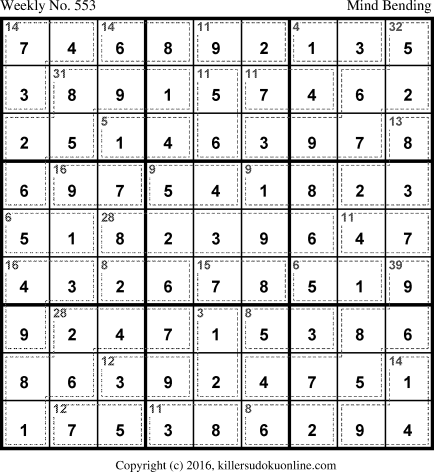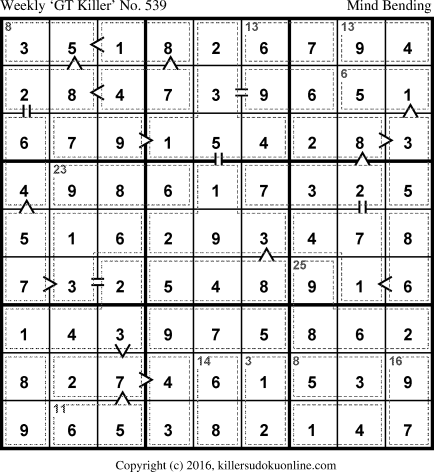 Weekly “Greater Than” Killer sudoku for week starting 8/8/2016