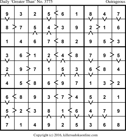 Weekly “Greater Than” Sudoku for week starting 8/8/2016