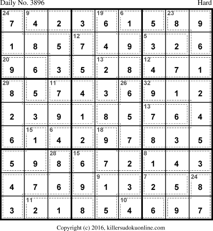 Weekly “Greater Than” Killer sudoku for week starting 8/15/2016