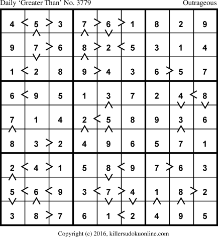 Weekly “Greater Than” Sudoku for week starting 8/15/2016
