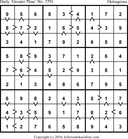 Daily “Greater Than” Sudoku for 8/30/2016