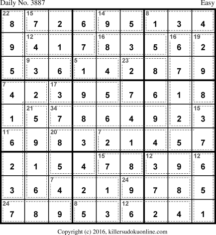 Weekly “Greater Than” Killer sudoku for week starting 8/8/2016