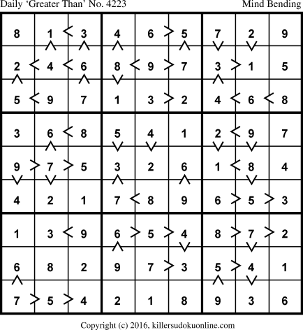 Weekly “Greater Than” Sudoku for week starting 10/30/2017