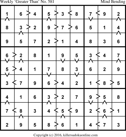 Weekly “Greater Than” Sudoku for week starting 3/6/2017
