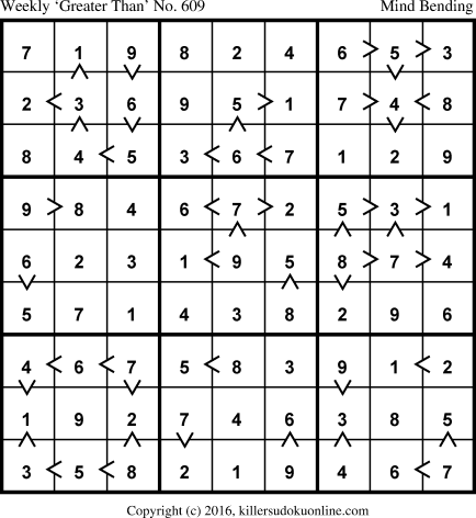 Weekly “Greater Than” Sudoku for week starting 9/18/2017
