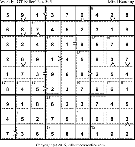 Weekly “Greater Than” Killer sudoku for week starting 9/4/2017