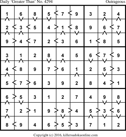 Weekly “Greater Than” Sudoku for week starting 1/15/2018