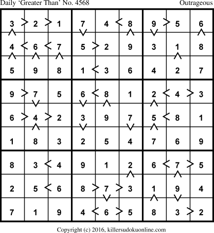 Weekly “Greater Than” Killer sudoku for week starting 10/15/2018