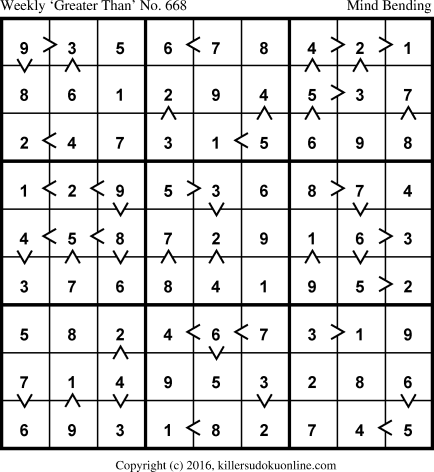 Weekly “Greater Than” Sudoku for week starting 11/5/2018