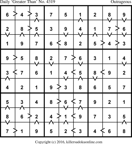 Weekly “Greater Than” Sudoku for week starting 2/5/2018