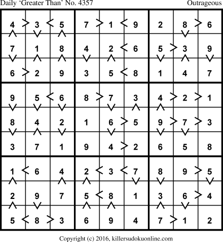 Weekly “Greater Than” Killer sudoku for week starting 3/19/2018