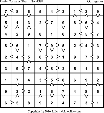 Weekly “Greater Than” Sudoku for week starting 4/23/2018