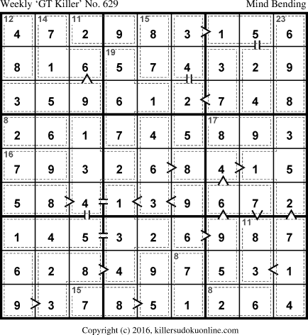 Weekly “Greater Than” Killer sudoku for week starting 4/30/2018