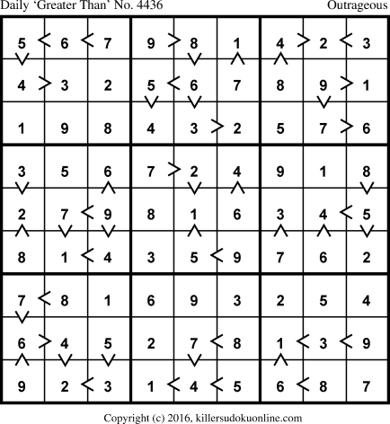Daily “Greater Than” Sudoku for 6/6/2018