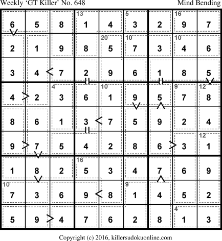 Weekly “Greater Than” Killer sudoku for week starting 9/10/2018