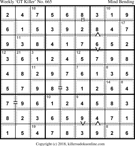 Weekly “Greater Than” Killer sudoku for week starting 1/7/2019