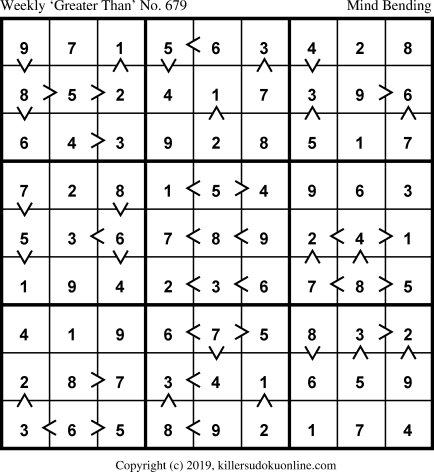 Weekly “Greater Than” Sudoku for week starting 1/21/2019