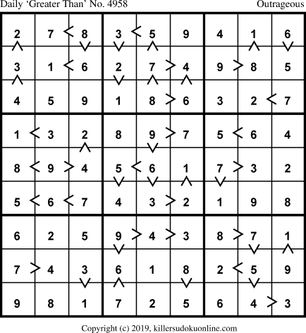 Daily “Greater Than” Sudoku for 11/10/2019