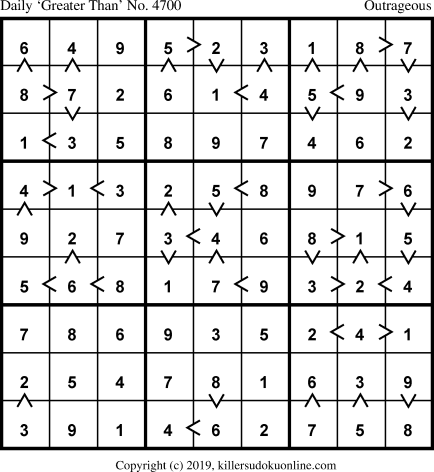 Daily “Greater Than” Sudoku for 2/25/2019
