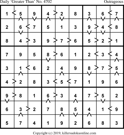 Weekly “Greater Than” Killer sudoku for week starting 2/25/2019