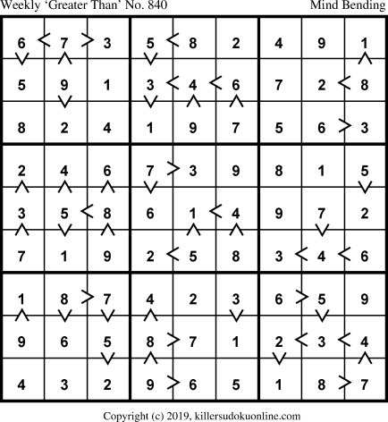 Weekly “Greater Than” Sudoku for week starting 2/25/2019