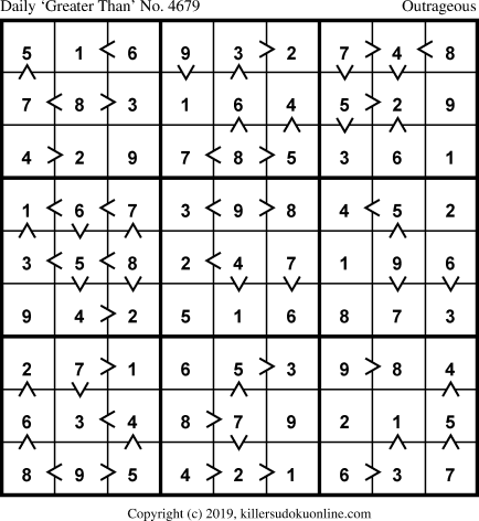 Weekly “Greater Than” Sudoku for week starting 2/4/2019