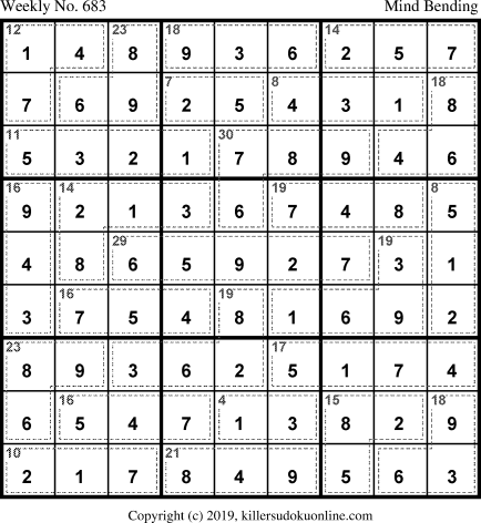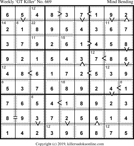 Weekly “Greater Than” Killer sudoku for week starting 2/4/2019