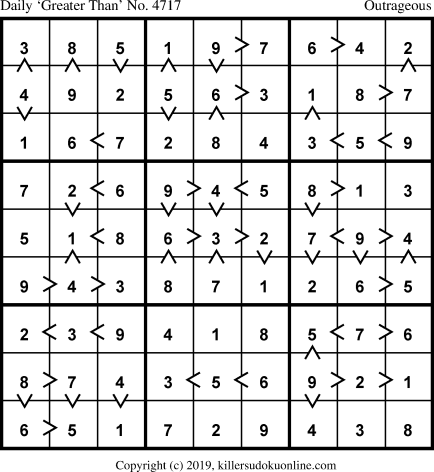 Weekly “Greater Than” Killer sudoku for week starting 3/11/2019
